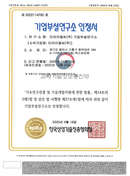 Copyright © 티아이엘씨(주) All rights reserved.
