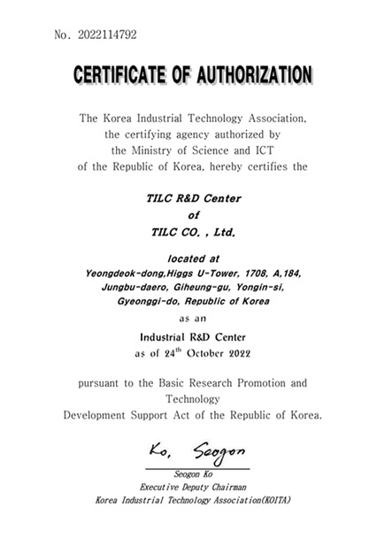 TILC Co., Ltd. #1708, A, 184, Jungbu-daero, Giheung-gu, Yongin-si, Gyeonggi-do, 17095, Rep. of Korea